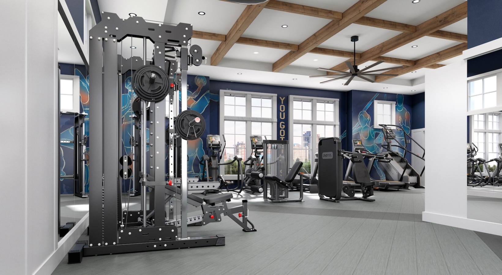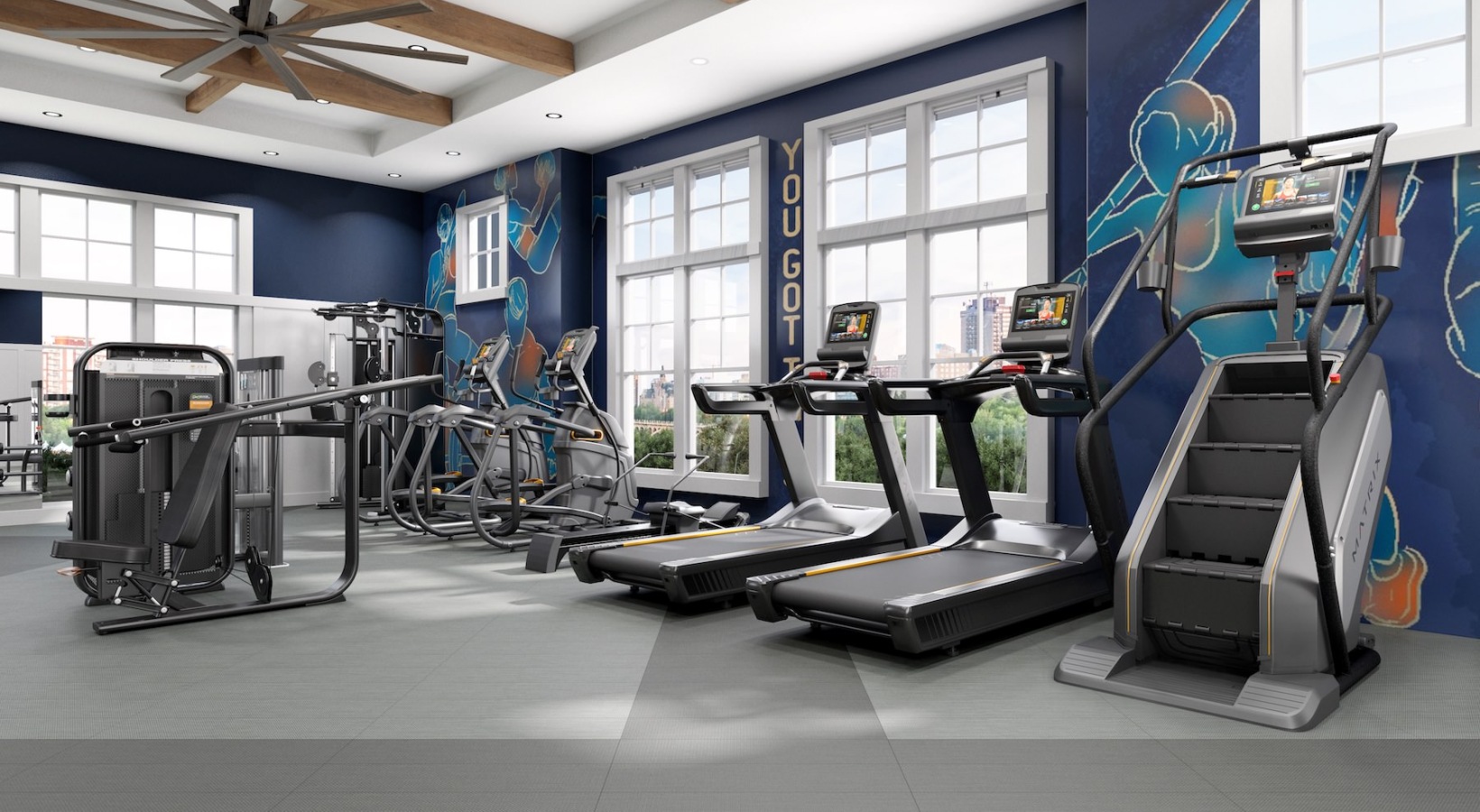 • a gym with exercise equipment