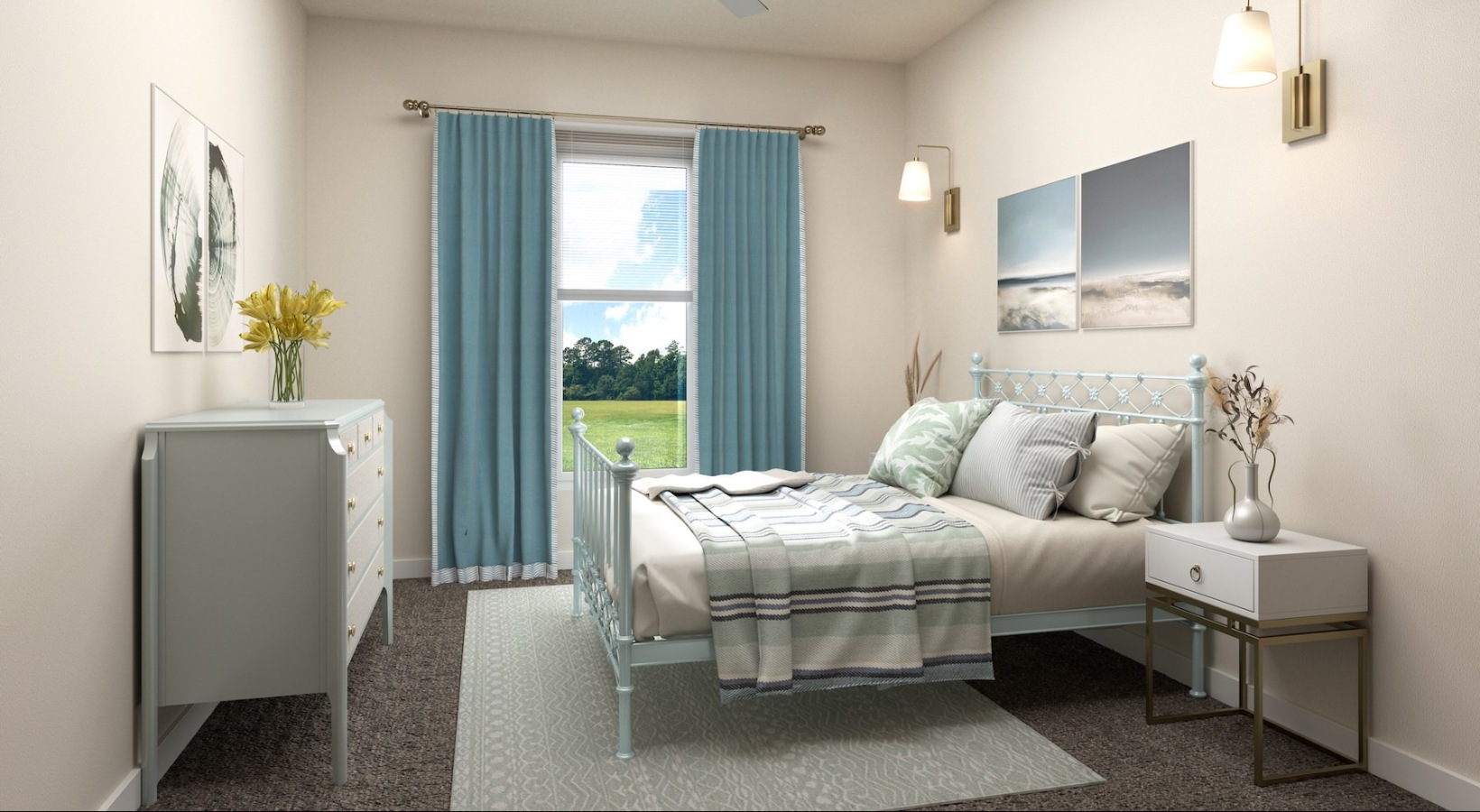 • a bedroom with a bed and a dresser